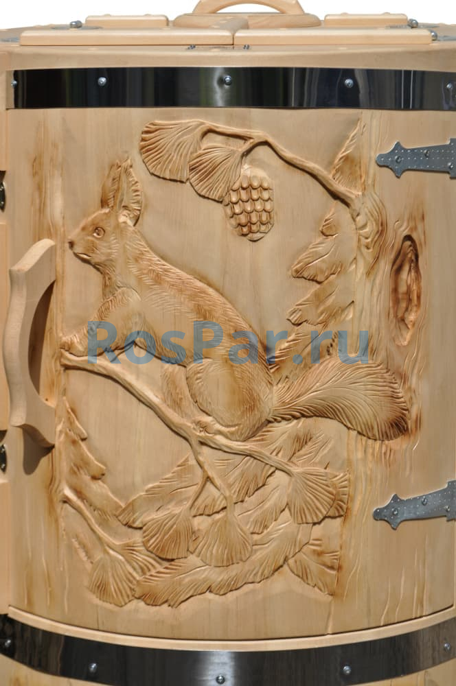 - Эксклюзивный дизайн: художественное оформление «Медведь и белка» придаёт бочке неповторимый стиль;