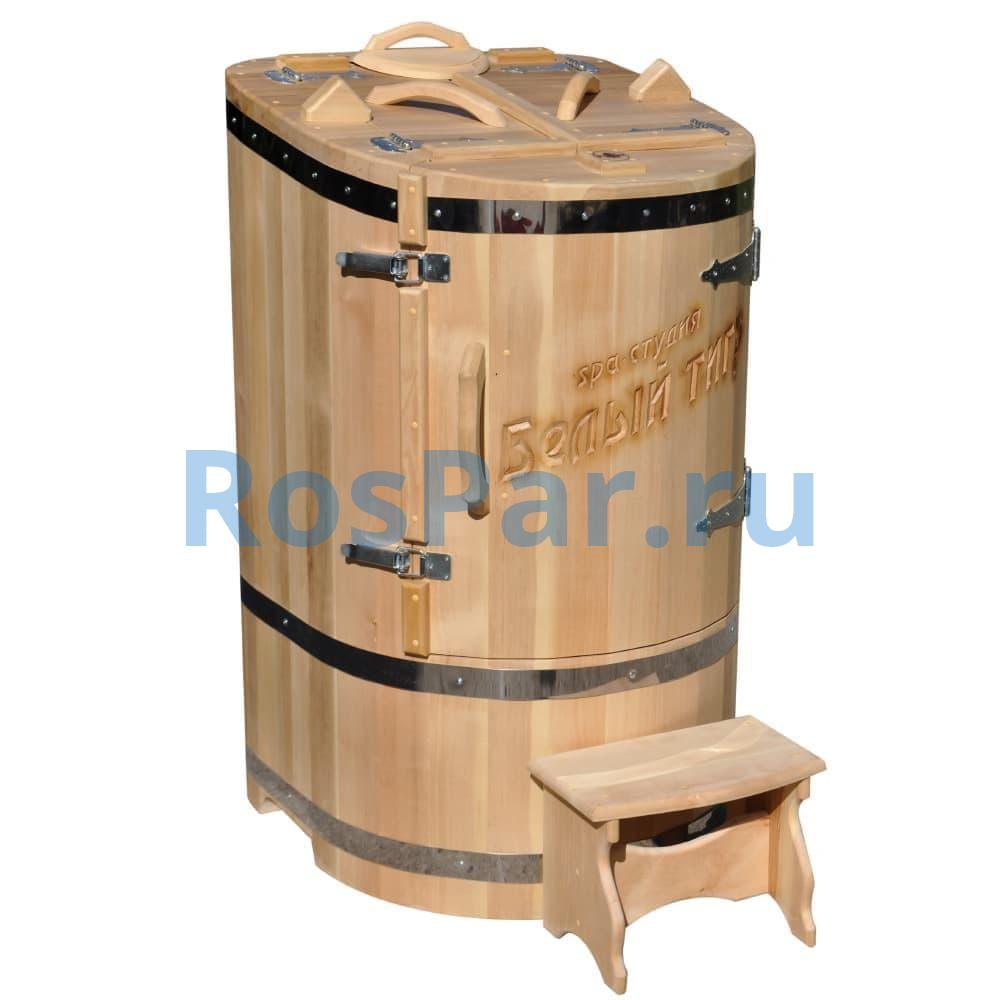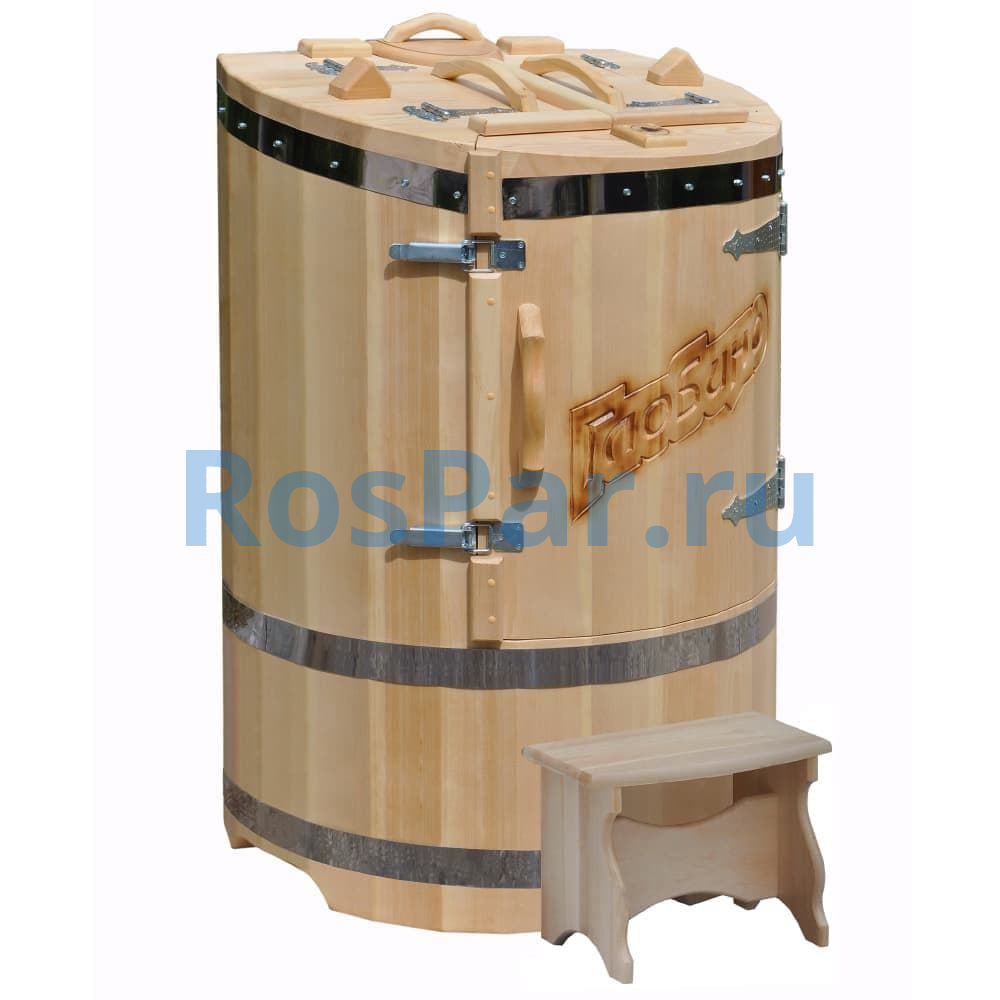 Бочка выполнена из качественного сибирского кедра толщиной 45 мм, что гарантирует отличную теплоизоляцию, прочность и долговечность. Скошенная крышка улучшает обзор и вентиляцию, а натуральный кедровый пар, насыщенный фитонцидами, способствует оздоровлению и глубокой релаксации.